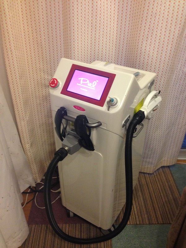 最初は営業さんも苦笑いでしたが、自分の足で試している分、その効果も、その後の毛質の変化もよくわかるようになりました。スタッフも含めて、全員が脱毛を試し、痛みのなし、スピーディ、冷却システムで効果の出やすい出力で光を当てられる機械ということで満場一致。ここまで検討して決めたマシーンがこちら↓