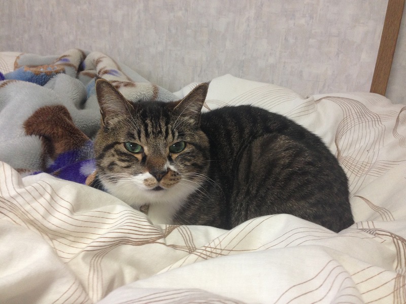 部屋が暖かかったからか、いつもは部屋に入ってこない(いつもは黒猫のコがきます)猫ちゃんがいました。