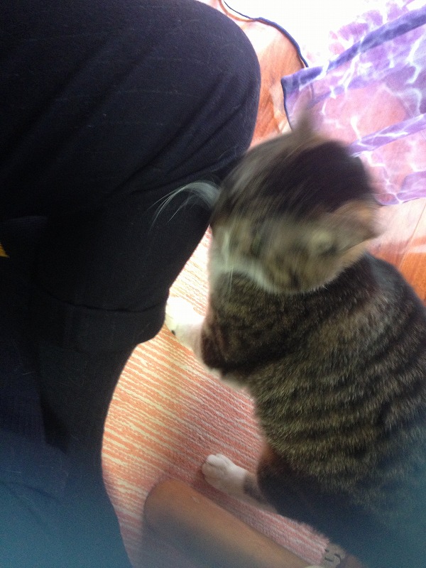 膝に顔をめっちゃ擦り付けてきました笑(油断したら携帯カバーの色がまたついてしまった